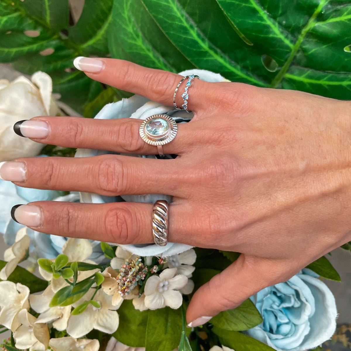 Anillo de plata con piedra. Puedes elegir entre 5 piedras: Aguamarina, Turquesa, Piedra Luna, Esmeralda y Onix.