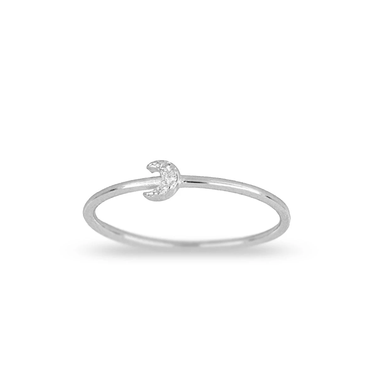Anillo de plata con luna y circonitas blancas. Fino y sencillo.