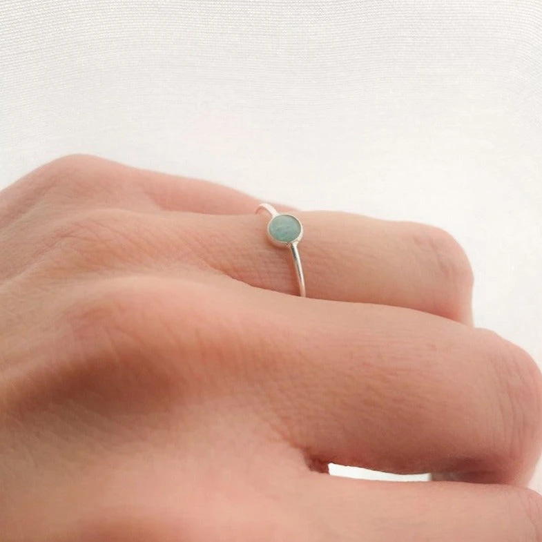Anillo sencillo amazonita, para amantes del minimalismo, este anillo será tu obsesión, con su precioso color azul claro y el brillo de la plata se convertirá en tu accesorio favorito para llevar todos los días.