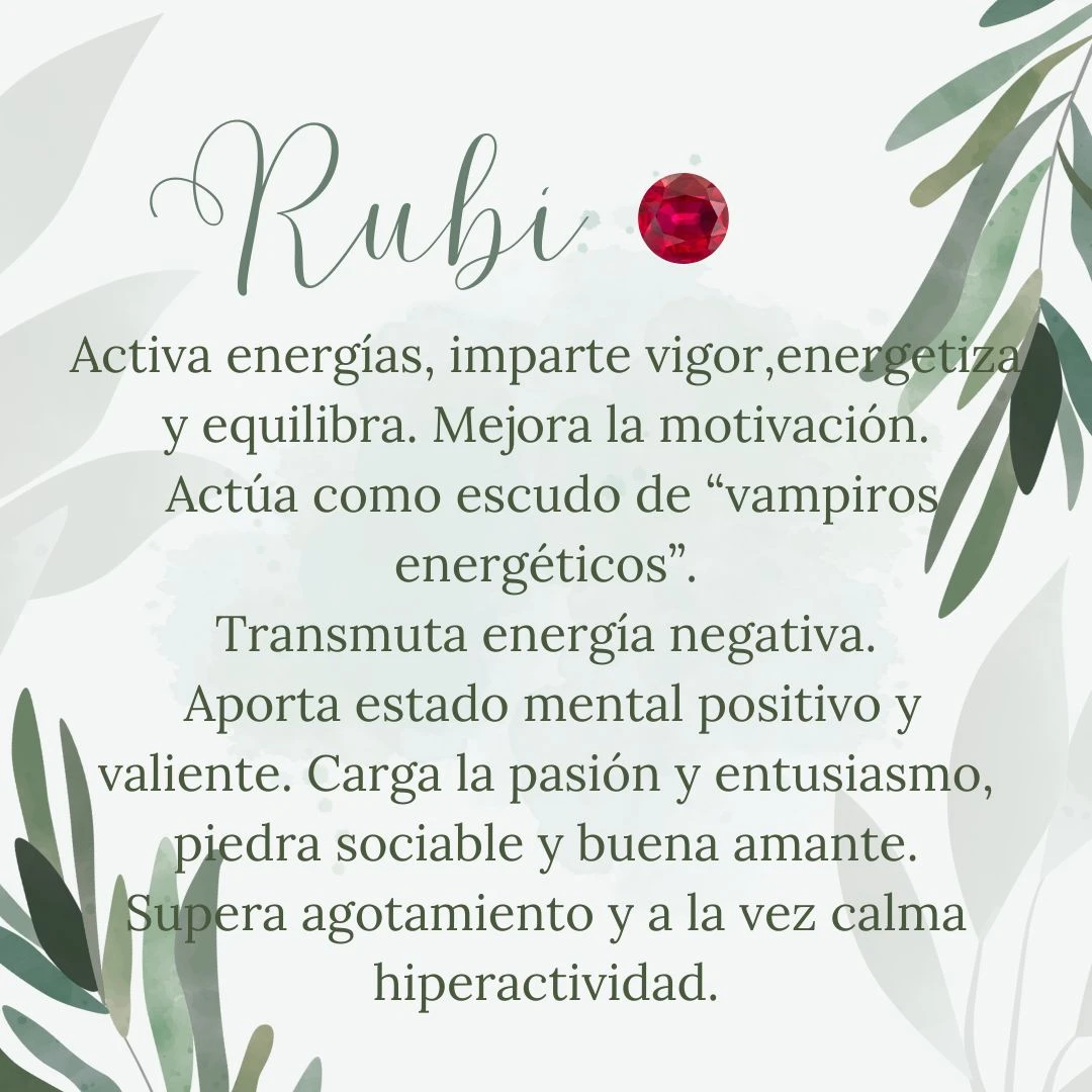 | Piedra | Esmeralda, Piedra Luna, Rubi, Turquesa |