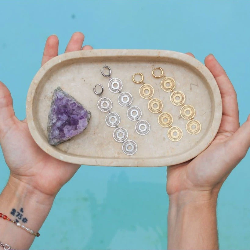 Pendientes largos compuestos por chapitas unidas entre sí, ideales para cualquier evento y PERFECTOS para ir preciosa si buscas pendientes para festivales