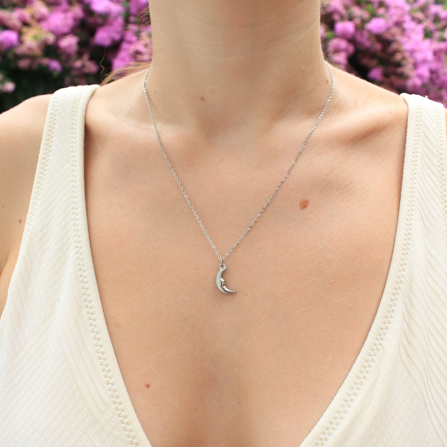 La cadena y el colgante están fabricados en acero inoxidable plateado y dorado.