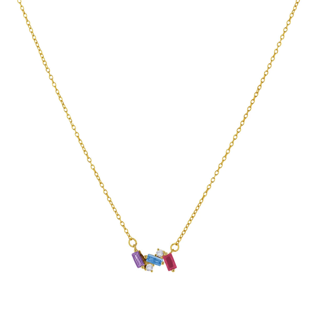 Estupendo Collar realizado con circonitas de colores vivos y combinaciones de formas geométricas.