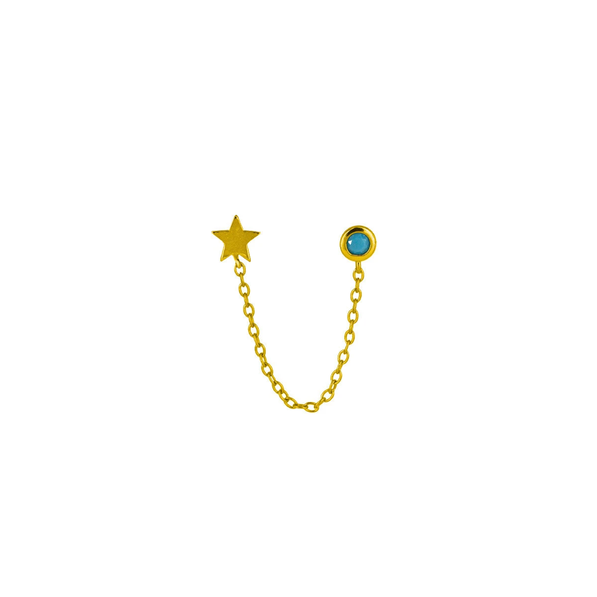 - Pendiente doble, en un lado una turquesa y en el otro unidos por una cadenita una luna.