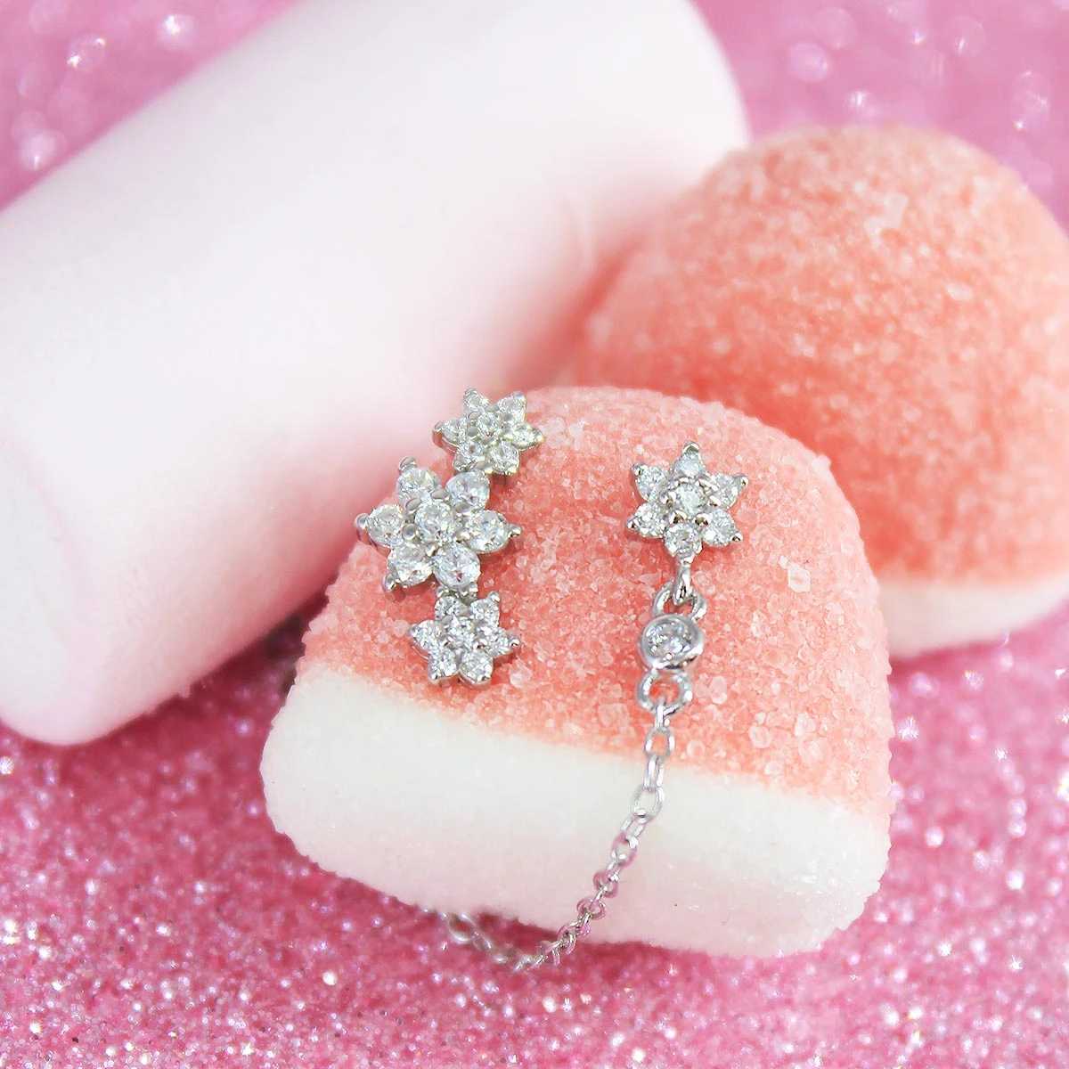 Pendiente de plata con forma de estrella y cadena.