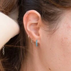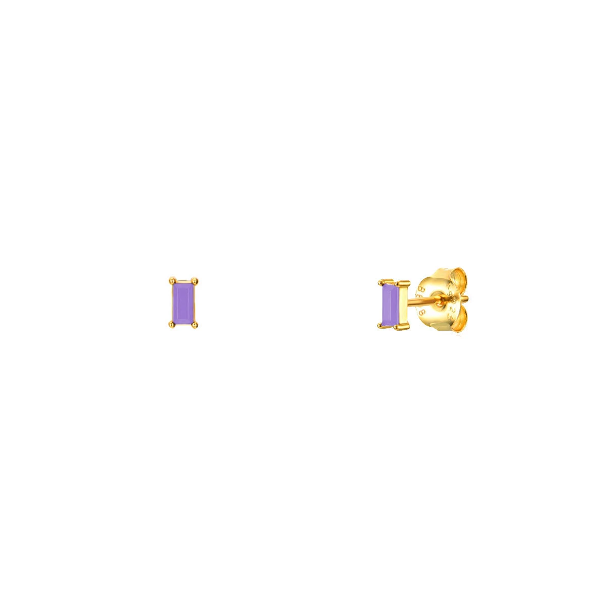 Pendientes pequeños con un rectángulo fucsia, lila, negro o blanco engastado.