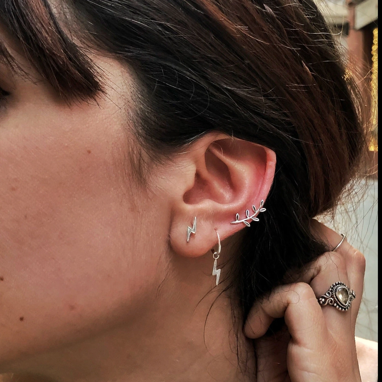 Cada pendiente sigue la forma de su oreja, ya sea izquierda o derecha, también pueden llevarse hacia abajo si cambias la orientación y la oreja.