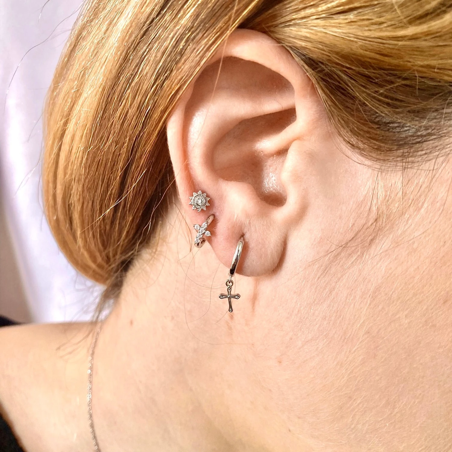 Piercing para la oreja de Plata 925 y Plata Bañada en Oro, perfecto para hélix o cualquier tipo de perforación, apertura por la bolita trasera.