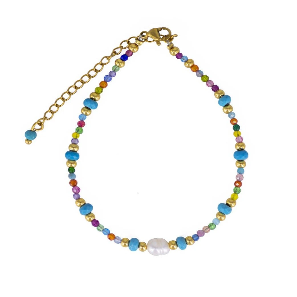Pulsera hecha a mano, diseño exclusivo de AlVent, realizadas con piedras naturales, circonitas, ágatas… y Perlas Naturales.