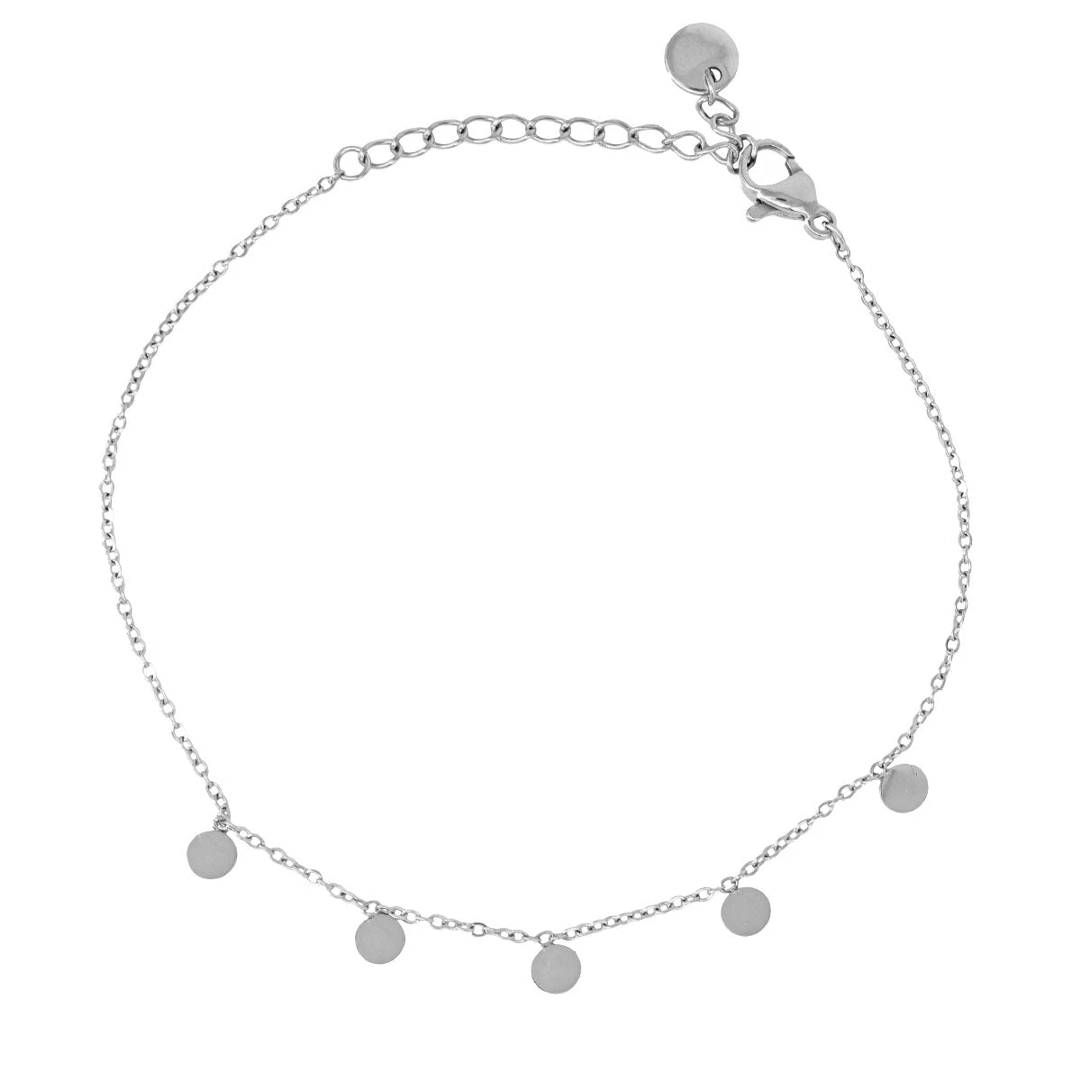 Una pulsera de acero original para mujer con chapitas redondas. Es una pulsera fina y elegante ideal para llevar a diario o para hacer un detalle a cualquier persona ya que no hay a quién no le guste.