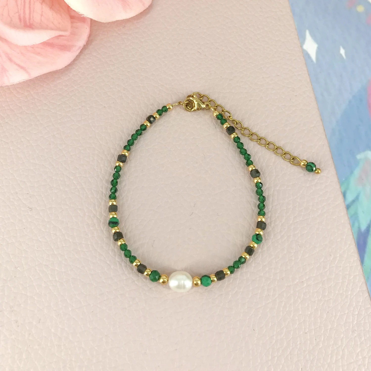 Pulsera hecha a mano, diseño exclusivo de AlVent, realizadas con piedras naturales, circonitas, ágatas… y Perlas Naturales.