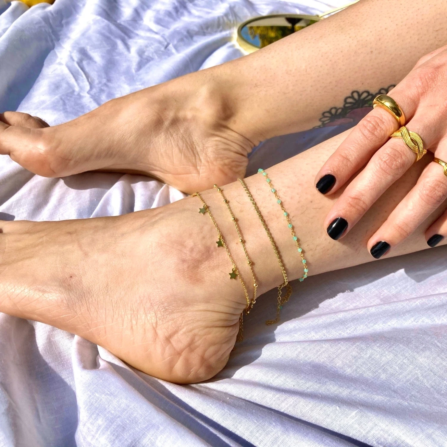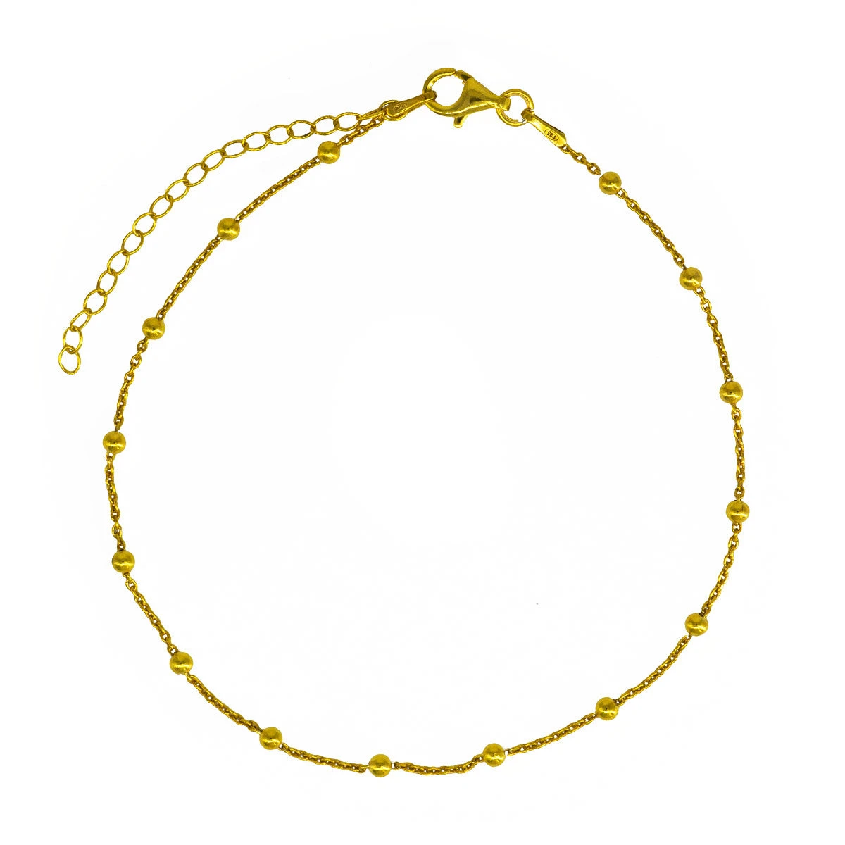 Tobillera de plata con bolitas.